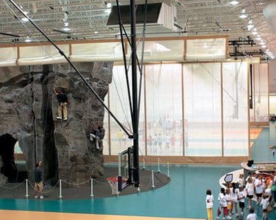 Because they retract when not in use, the gym can still function as a full open space when needed.